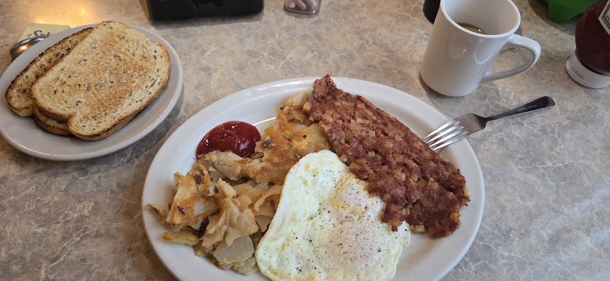 Scrapple on deck . Nice place with very good service. They also had some nice scraple . If you know you know. I will try them again.
