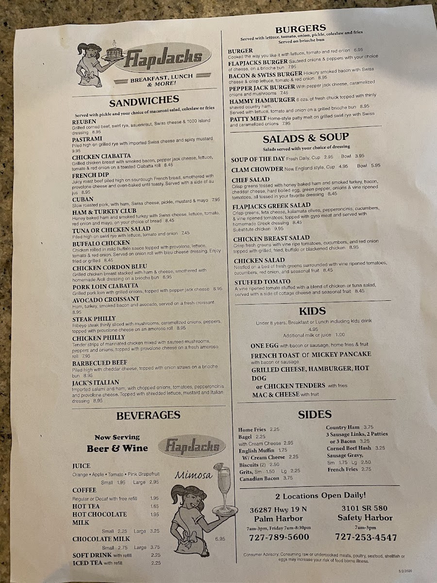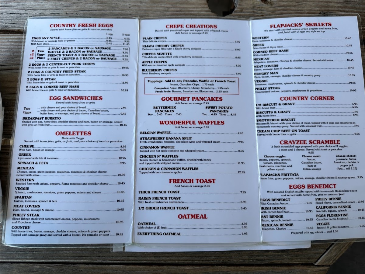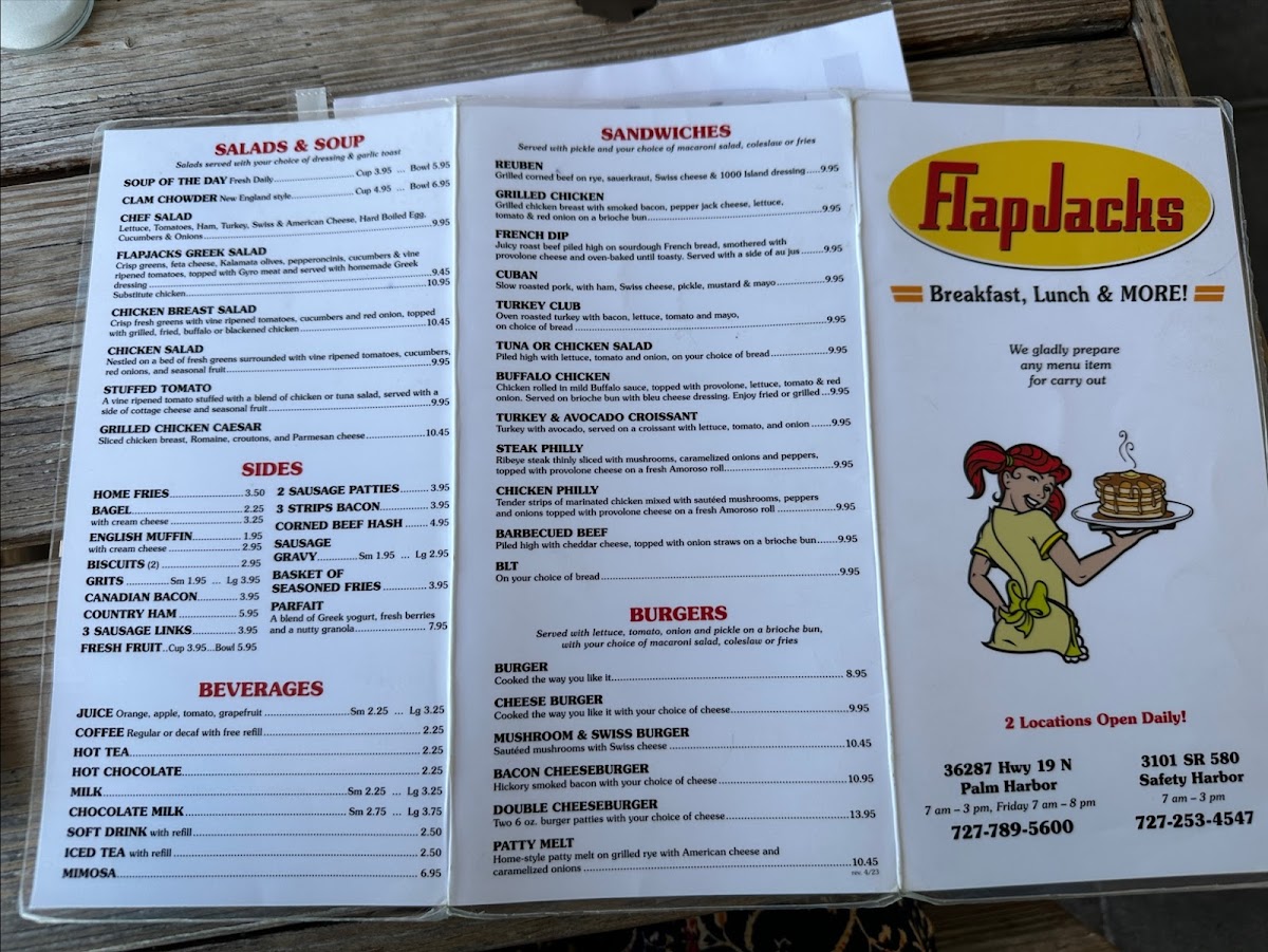 The menu at Flapjacks offers a straightforward and comforting selection of classic breakfast and brunch dishes, perfect for starting your day or enjoying a casual midday meal. You’ll find familiar favorites served in generous portions, featuring hearty skillets, fluffy pancakes, and savory egg dishes that reflect the warm, inviting atmosphere of this Palm Harbor spot.